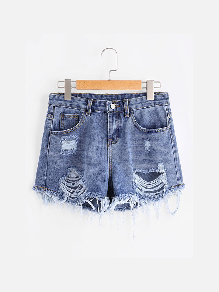 Frayed denim shorts